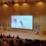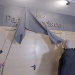 El emotivo cierre estuvo marcado por la bendición del auditorio, a cargo del párroco de Monserrat, Martín Panatti, al momento de descubrirse el cartel con el nombre “Francisco”.