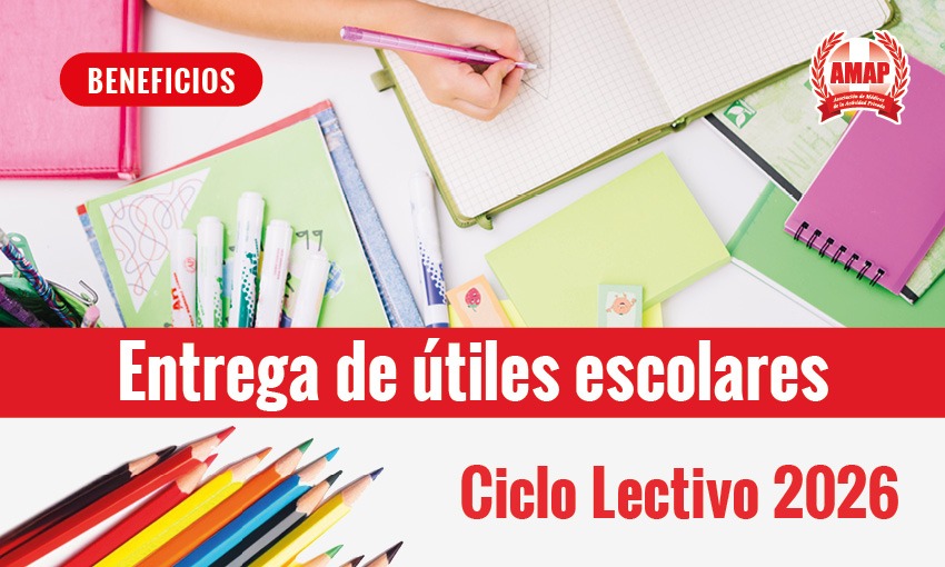 La AMAP hace entrega de kits de útiles escolares para hijos de los afiliados que cursen jardín maternal (a partir de los 2 años), jardín de infantes, nivel primario y nivel secundario.