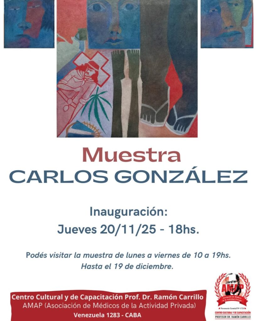 Del 20 de noviembre al 19 de diciembre, el Centro Cultural y de Capacitación Prof. Dr. Ramón Carrillo de la AMAP abre sus puertas para presentar la obra del reconocido pintor, grabador y muralista Carlos Patricio González, figura destacada del arte argentino desde 1965.