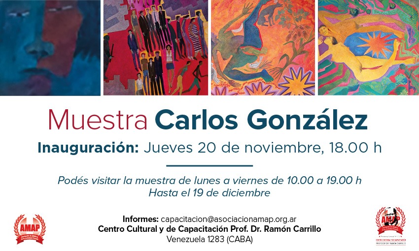 Del 20 de noviembre al 19 de diciembre, el Centro Cultural y de Capacitación Prof. Dr. Ramón Carrillo de la AMAP abre sus puertas para presentar la obra del reconocido pintor, grabador y muralista Carlos Patricio González, figura destacada del arte argentino desde 1965.